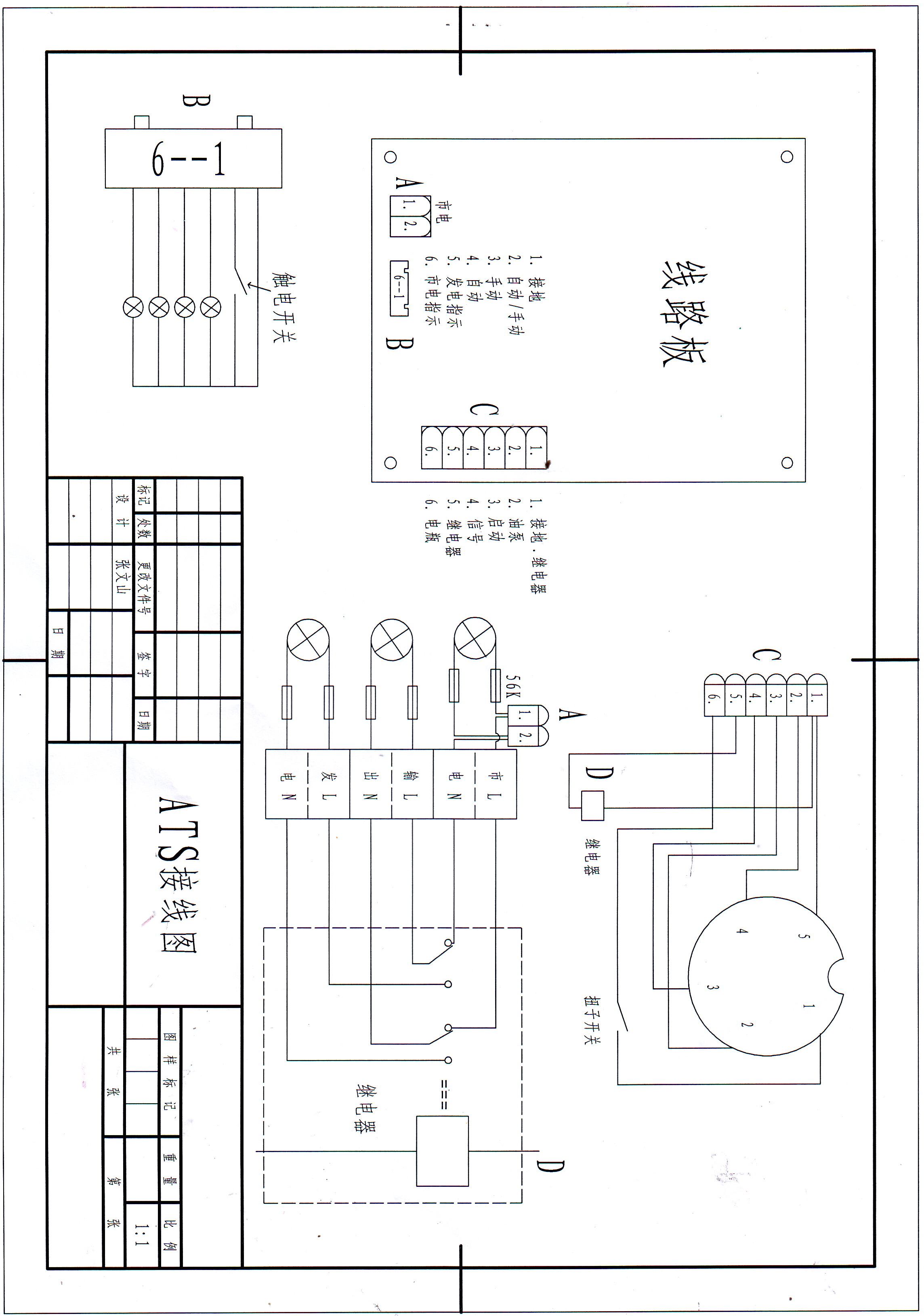 全自動發(fā)電機ATS接線圖