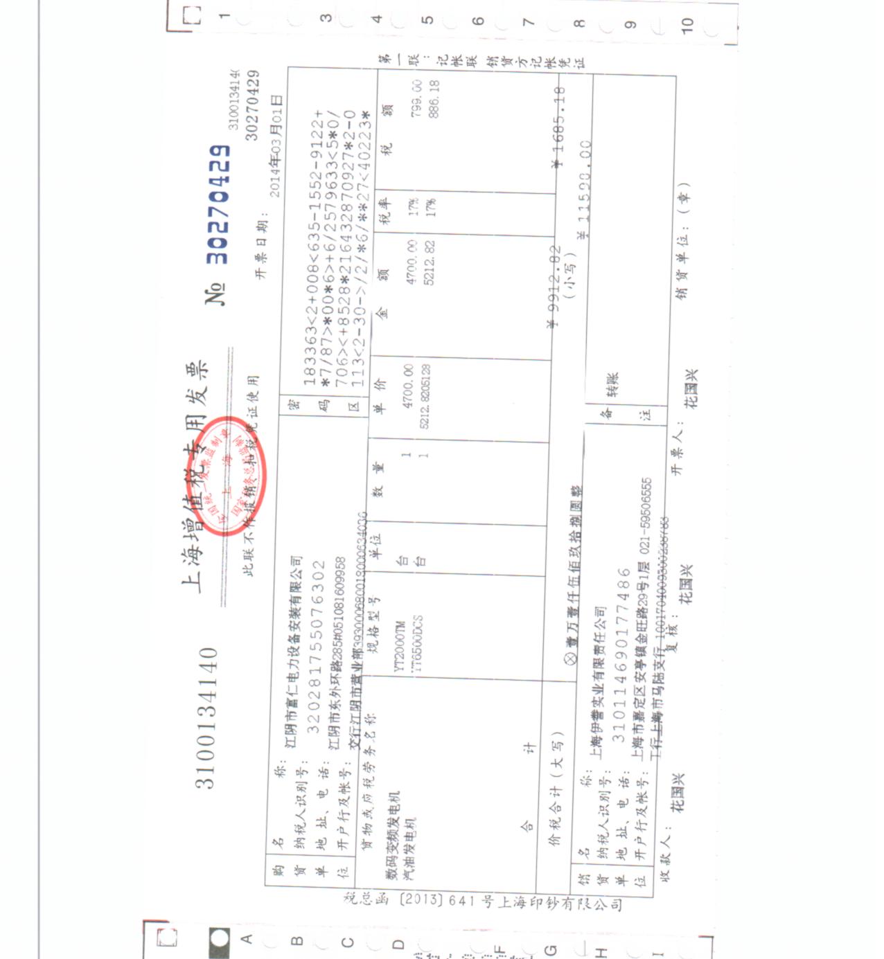 江蘇富仁集團(tuán)——江陰市富仁電力設(shè)備按照有限公司,陶部長(zhǎng) 于2014年2月25日在網(wǎng)上看到伊藤發(fā)電機(jī)的產(chǎn)品的,當(dāng)時(shí)來(lái)了興趣,跟伊藤發(fā)電機(jī)的業(yè)務(wù)員小汪聯(lián)系了起來(lái),要了些資料,但是我們的陶部長(zhǎng)真的是一個(gè)很細(xì)心,很負(fù)責(zé)任,很謹(jǐn)慎的人,要了資料看了還不頂用,還必須要去廠里看下,因?yàn)樘厥庠颍瑳](méi)有達(dá)成,但是小汪的經(jīng)理帶了陶部長(zhǎng)到伊藤發(fā)電機(jī)其中一個(gè)庫(kù)房去看了現(xiàn)貨,庫(kù)房場(chǎng)地很大,在上海這樣一個(gè)寸土寸金的地方能有600-900萬(wàn)的庫(kù)房我想足以證明伊藤發(fā)電機(jī)的實(shí)力了,并且伊藤發(fā)電機(jī)在大眾創(chuàng)意園購(gòu)買一套價(jià)值500萬(wàn)的辦公樓,這些均可以證明伊藤發(fā)電機(jī)的實(shí)力,果然,2014年2月27日,陶部長(zhǎng)及設(shè)備部的陳經(jīng)理來(lái)到伊藤發(fā)電機(jī)直營(yíng)店后,28日回到公司,當(dāng)即定下了合同,28日款項(xiàng)進(jìn)伊藤發(fā)電機(jī)公司賬戶,我把庫(kù)房照片分享到伊藤圖冊(cè)(很遺憾,應(yīng)該跟帥帥的陶部長(zhǎng)來(lái)張合影的)