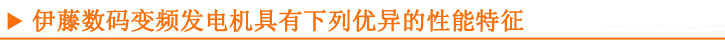 第一家中國動(dòng)力供應(yīng)商研制了數(shù)碼發(fā)電機(jī)系列產(chǎn)品。首次將控制模塊技術(shù)應(yīng)用于發(fā)電機(jī)組,因此,與同功率等級(jí)的傳統(tǒng)發(fā)電機(jī)組相比,數(shù)碼發(fā)電機(jī)組更輕巧,電力更潔凈,排放更低,是真正的綠色環(huán)保型發(fā)電機(jī)。無論你是開車到郊外遠(yuǎn)足還是野營(yíng)海邊,您只需要輕松的提上一臺(tái)伊藤數(shù)碼發(fā)電機(jī),即可使用您的小型家用電器,享受美妙的戶外生活。伊藤數(shù)碼發(fā)電機(jī)可靠的性能,輕巧的機(jī)身,高品質(zhì)的電源,令機(jī)組成為夜市小型商家的最愛,更是現(xiàn)代家庭理想的應(yīng)急電源。燈火闌珊處,也許正有一臺(tái)伊藤數(shù)碼發(fā)電機(jī)靜靜的運(yùn)行著。